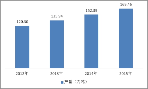 图表 2012-2015年中国摩擦与密封材料产量情况