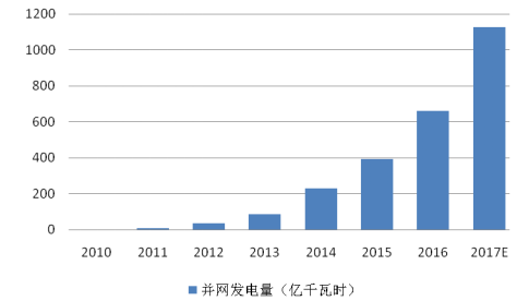 2010-2017年我国并网太阳能发电量