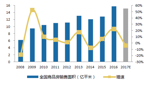 2017年中国房地产市场发展趋势分析 商品房销售预测市场分析报告,综合来看,考虑到2016年全年的高基数,我们预计,2017年全年全国商品房销售面积同比下降4%左右,销售金额同比下降2%左右。
