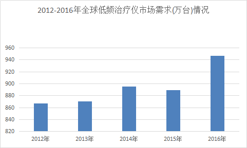 2012-2016年全球低频治疗仪市场需求(万台)情况