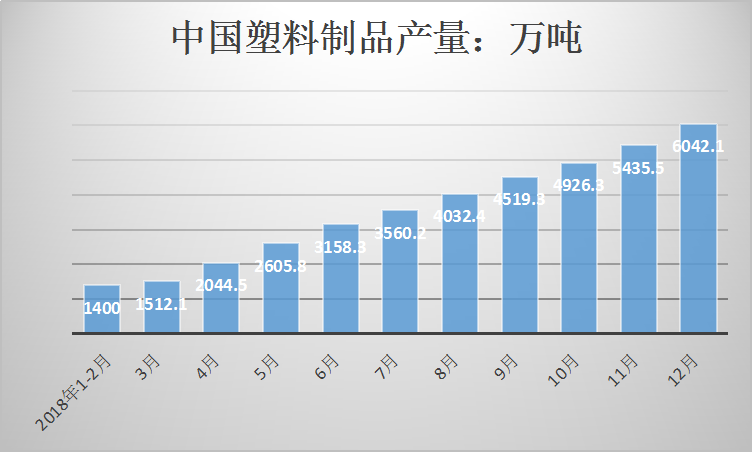 2018年1-12月年全国塑料制品行业产量达6042.1万吨,累计增长1.1%。据我国统计局数据显示,今年1-5月份我国塑料制品总产量为2886.5万吨,同比下降1.2%。