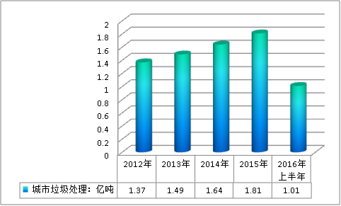 据,灵核网发布的《2018-2023年中国固废处理行业调研深度分析及市场投资研究预测报告》数据显示,我国城市垃圾生活产生量达1.43亿吨,处理量达1.37亿吨,到2015上半年产生量达1.85亿吨,处理量达1.81亿吨。