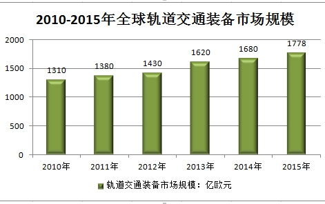 2010-2015年全球轨道交通装备市场规模