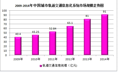 2009-2014年中国城市轨道交通信息化系统市场规模走势图