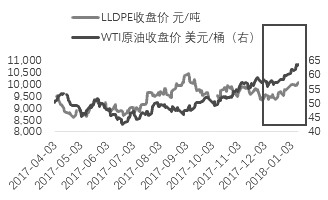PE作为石油炼制的下游产品,其长周期价格跟随国际油价走势。2014—2016年原油市场连续三年供大于求,2017年通过OPEC产油国减产协议,实现了供需再平衡进程。